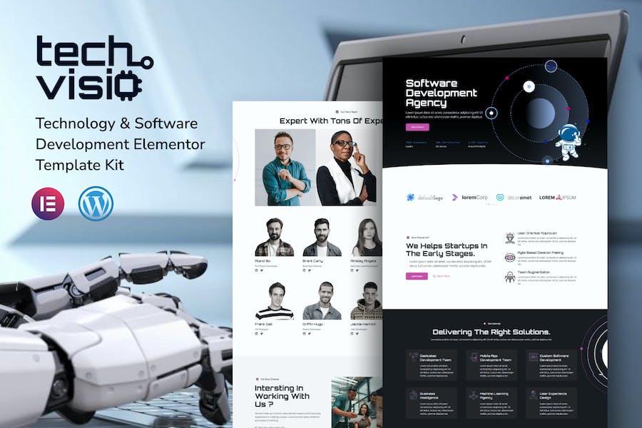 Techvisio – Techvisio Consulting Elementor Template Kit is an Elementor Template Kit to quickly and easily create a website for your business using the Elementor Page Builder plugin for WordPress., Techvisio Technology & Software Development Elementor Template Kit