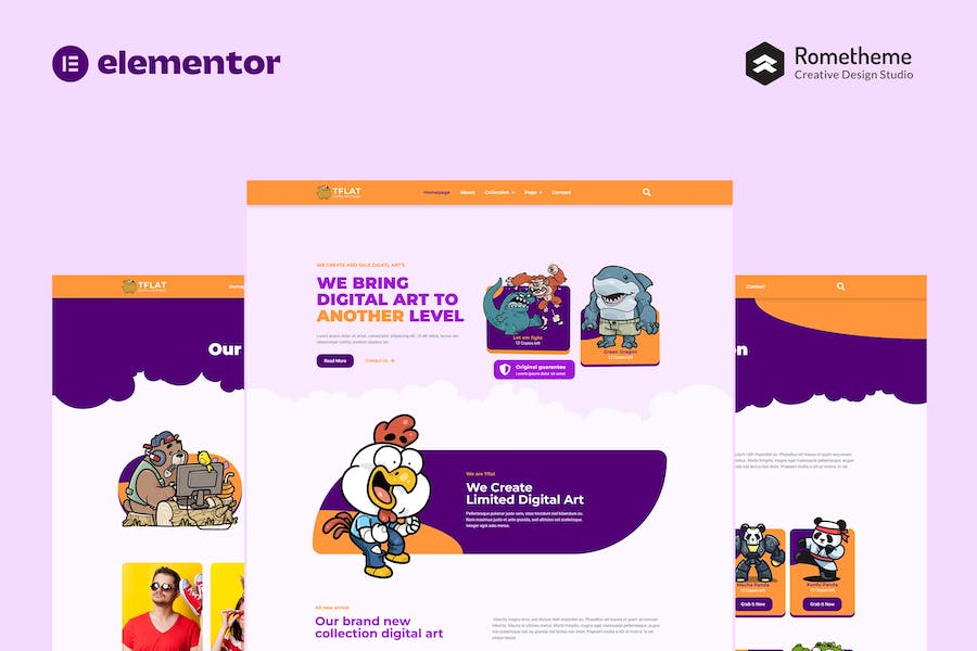 Tflat is an Elementor Full Site Kit for quickly and easily creating a full Elementor Pro website for your Nft, Digatal Art & Portfolio website. It is optiamized for the free Hello Elementor theme but can be used with most themes that support the Elementor page builder. Customize fonts and colors via the built in Elementor Theme Styles controls and load in your photos, logos and content using the visual drag and drop builder., Tflat NFT Portfolio Elementor Pro Full Site Template Kit