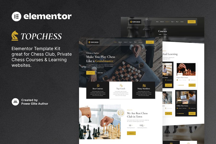 Topchess is a modern and clean Elementor Template Kit that is perfect for those who want to create a professional-looking WordPress-based website for a chess club, chess course & learning center, chess coach, and any other board games or sports club. This template has a professional design with a 100% responsive layout, is retina-ready, and is very easy to customize because using Elementor so you don?t need a single line of coding!, Topchess ? Chess Club Courses & Training Elementor Template Kit