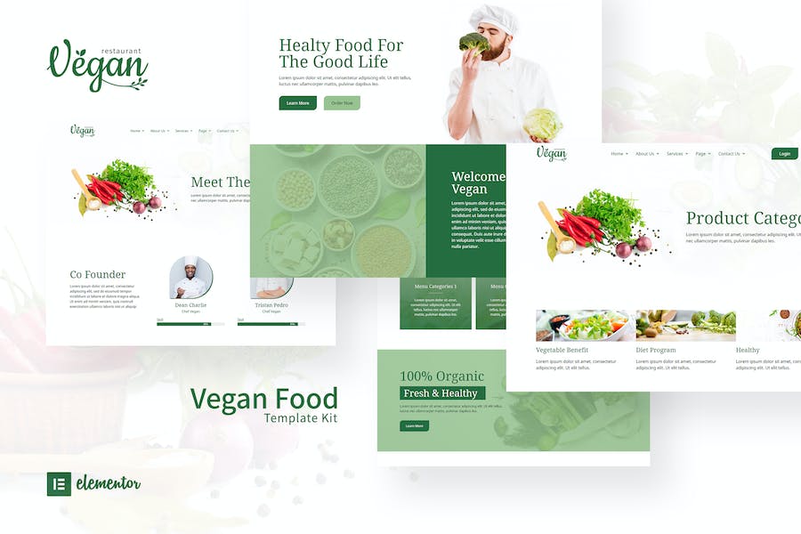 Vegan is a fresh minimalistic Elementor Template Kit for quickly and easily creating websites for your catering, restaurant or health business using the Elementor Page Builder plugin for WordPress. This kit has been optimized for use with the free Hello Elementor theme but may be used with most themes that support Elementor., Vegan Restaurant Elementor Template Kit