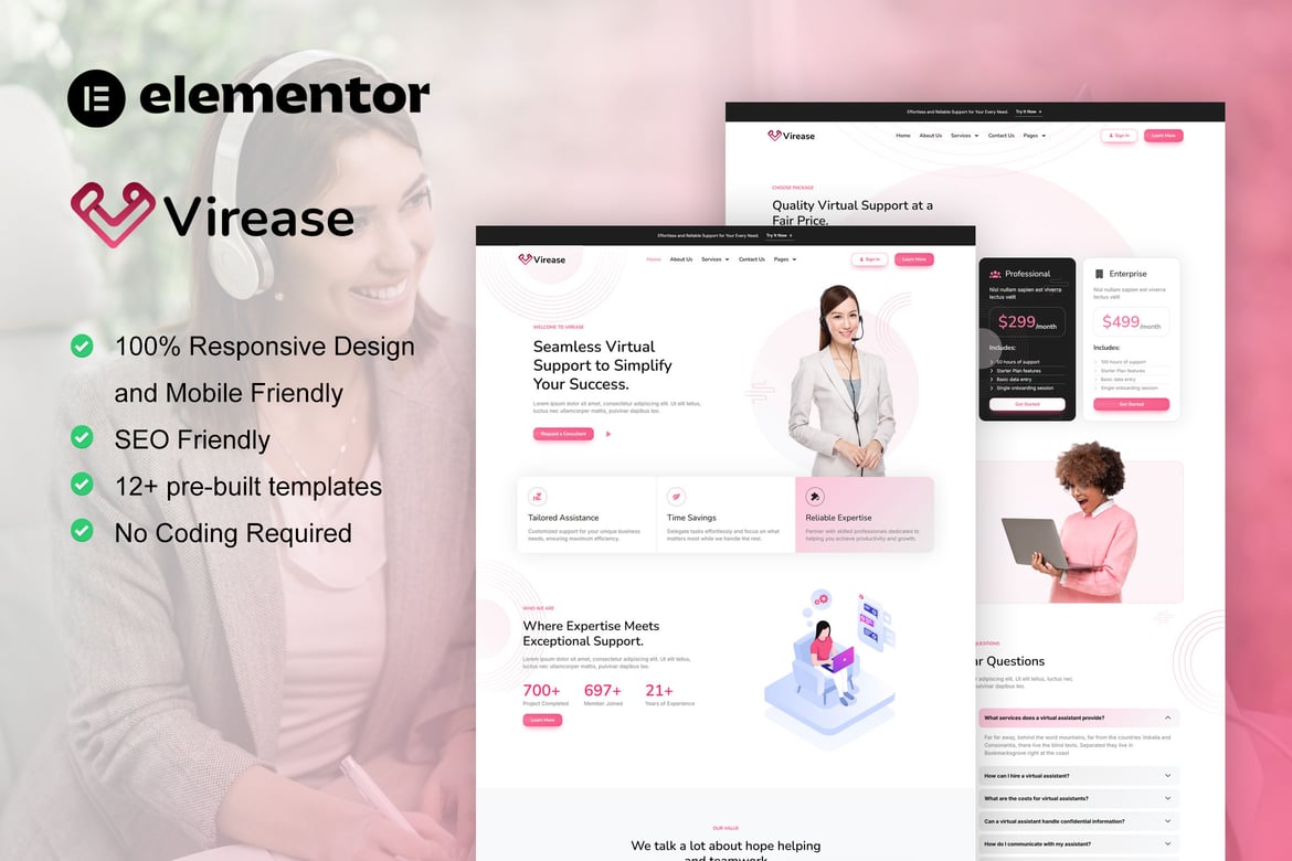 Virease – Virtual Assistant Service Elementor Pro Template Kit Elementor Template Kits Download, Virease – Virtual Assistant Service Elementor Pro Template Kit