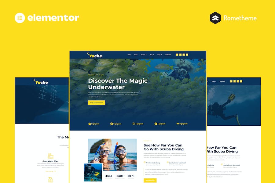 Yache – Scuba Diving Center Elementor Pro Full Site Template Kit