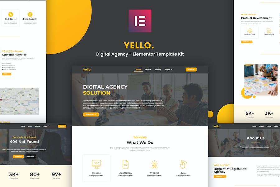 Yello – Digital Agency Template Kit is a collection of layout templates for the Elementor Page Builder WordPress plugin. It is clean and modern design which is useful for design, digital, websites, and others., Yello – Digital Agency Elementor Template Kit