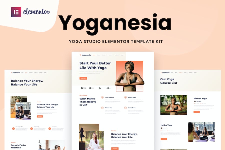 Yoganesia – Yoga Training Website Template is an Elementor Template Kit for quickly and easily creating a full esport website for your business. It is optimized for the free Hello Elementor theme but can be used with most themes that support the Elementor page builder. Customize fonts and colors via the built in Elementor Theme Styles controls and load in your photos, logos and content using the visual drag and drop builder. This is not a WordPress theme. Template Kits contain page content for Elementor page builder. This kit has been optimized for use with the free Hello Elementor theme but may be used with most themes that support Elementor., Yoganesia – Yoga Training Elementor Template Kit