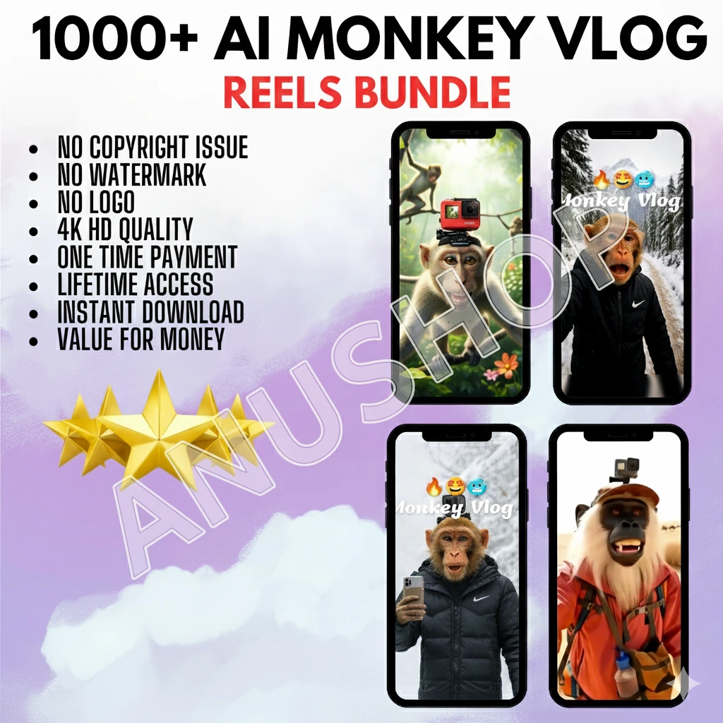 DOWNLOAD 1000+ AI MONKEY VLOG REELS BUNDLE