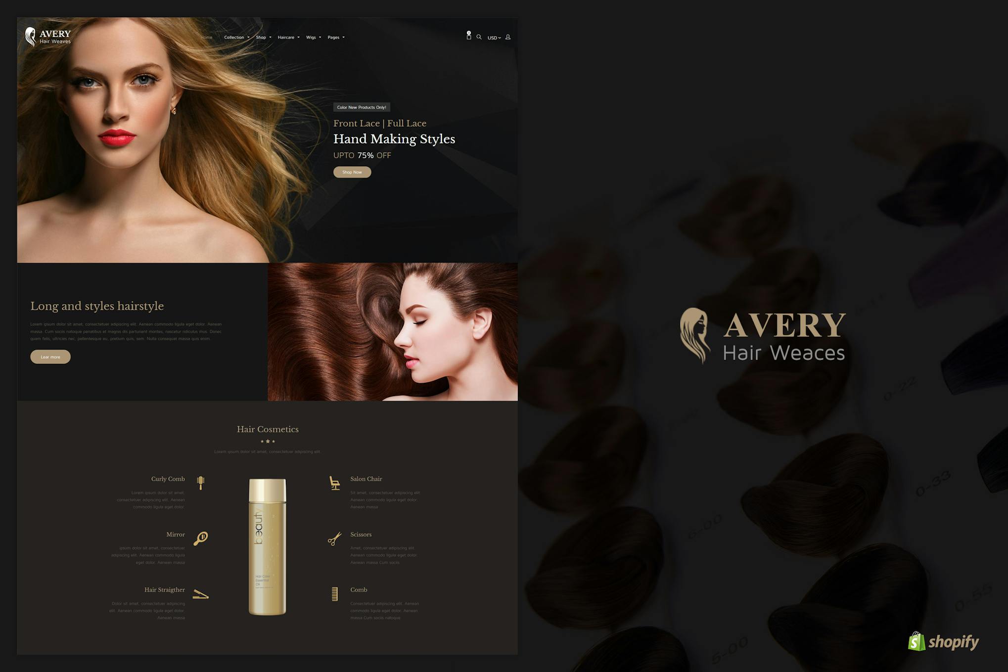 Avery | Hair Wig Shopify Theme Barber, Spa & Salon Products Shopify Theme. Hair Care Cosmetics, Skin Care, Wigs, Beauty Products!