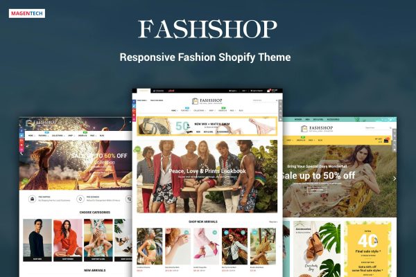 **FashShop** is a creative **Shopify theme** that has a hundred options to create a lot of layouts by mixing all sections already integrated inside. It is also inherited all powerful functionality of our bestselling Shopify theme with trending design styles. FashShop premium Shopify theme is built based on powerful **Shopify Sections** using drag & drop page builder, therefore you can easily adjust your online store as your wishes. With the powerful admin panel, you can almost control every features of the theme as well as customize your shop more without much coding knowledge. **CORE FEATURES** + Bootstrap 4 + Include Google’s Rich Product Snippets for Better SEO + Responsive Design + Built with CSS 3 + HTML 5 + Google Web Fonts Integration + Mega Menu + Ajax Layered Navigation + Lazy Loading Image + Display payment options + Variant Image + Product Image Size Settings + Multilevel Navigation + Color Swatches Ready + Custom logo, favicon upload easily + Custom product per page and product per row + Simply to Use & Variant Color Options in Admin Backend + Newsletter Signup Popup with Mailchimp Support + Custom Tabs (Horizontal & Vertical) in Product Page + Flexslider Image Slideshow Module + Dropdown Shopping Cart + Ajax Add to Cart + Product Label + GRID & LIST Mode + Hover Effect for Product Images + Zoom Box & Lightbox Effect in Product Page + Product Reviews + Related Products + Shipping Calculator in the Cart page + Multiple Currencies + Blog Page Design + Custom Contact Page + SEO Optimized + Compatible with IE10+, Firefox, Netscape, Safari, Opera 9.5 and Chrome **Note:** All images are just used for preview purpose only and NOT included in the final purchase files. _This design also is available in OpenCart – FashShop OpenCart Theme_, FashShop – Drag & Drop Bootstrap 4 Shopify Theme Best Fashion Shopify Theme – High Speed & SEO Optimized