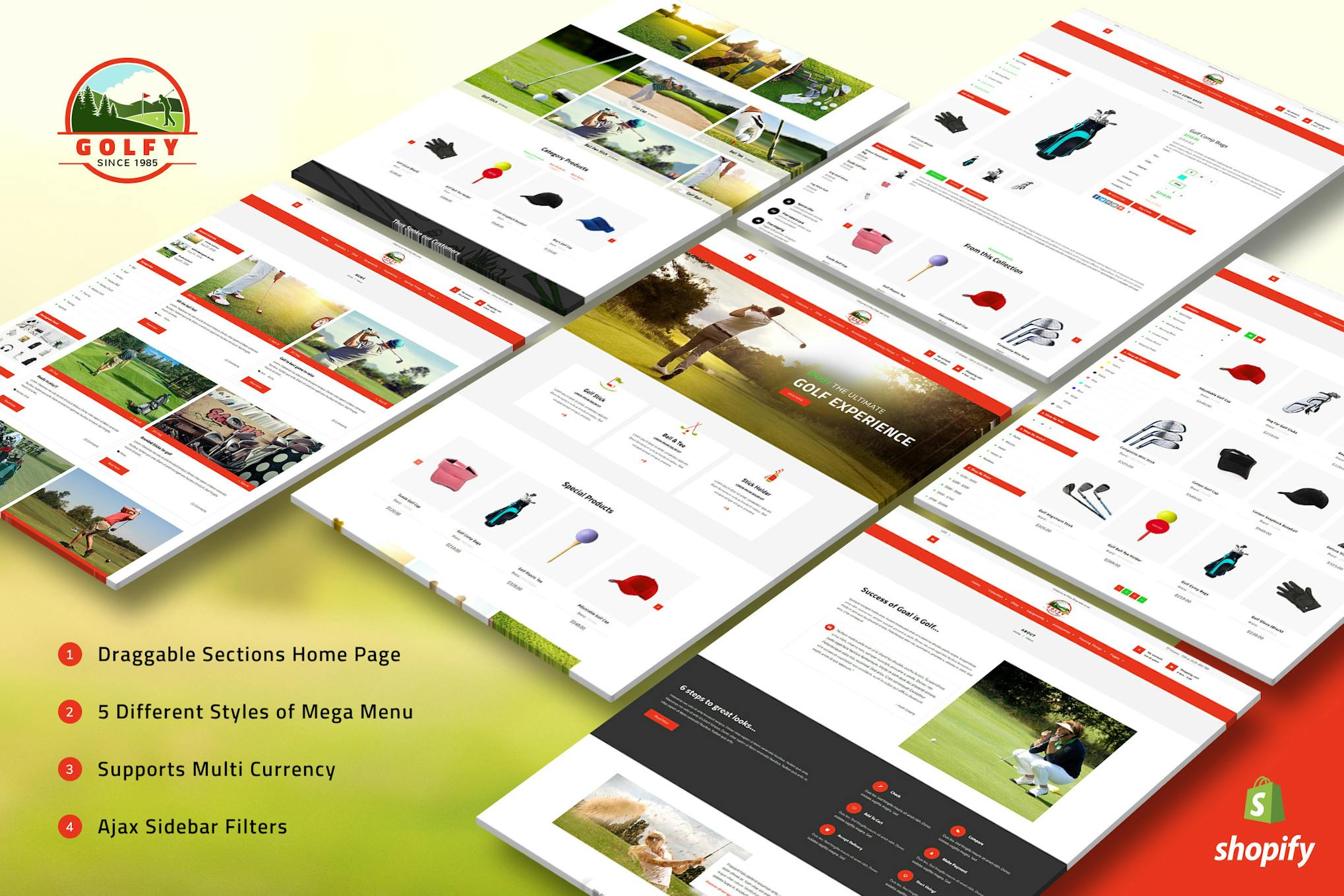 Golfy – Golf, Sports Shopify Theme Golf Club, Golf Sporting Gears & Equipments Shopify Theme. Sports Clothing, Shoes & Accessory Theme!