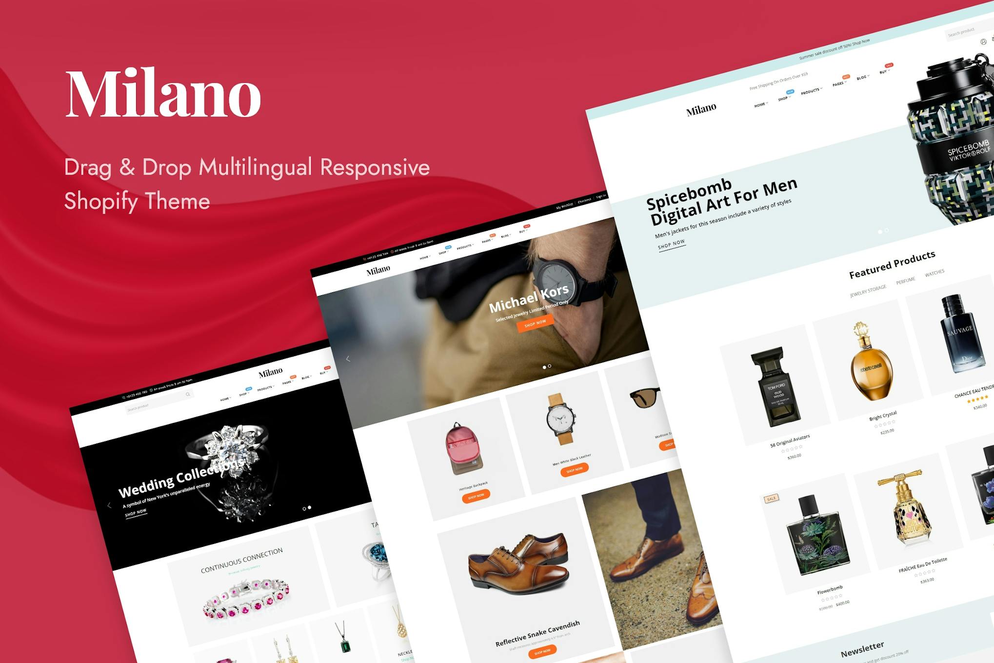Milano is clean, minimal and Drag & Drop Multilingual Responsive Shopify Theme. The products are the focus and the user experience is of the highest quality. Your clients will find it super easy to browse and buy on both PC or mobile. This theme is perfect for any clothing, product, jewellery or fashion store, from small one man operations to the biggest retail superstore. The built-in translator allows you to translate easily the store into another language. If you prefer a multilingual store, this theme is made for you. **Key Features** – Pre-made Demos Included in the theme are some pre-made demos for any kind of website, get them with 1 Click Demo Importer, this list is updated frequently. and more to come in the upcoming updates! – Amazing Theme Options Through our new Theme Options, enjoy the unlimited possibilities that you’ll always desired, you’re free to express your own creativity. – Mobile Optimized Design No reason to worry about the growing mobile device market. Your site will look razor sharp on any device. – Top 10 Product Layouts Conversion rate for your website will depend on product page view. We offer only trusted variants checked by our experience. Choice is on your side. – A Flexible Shop Layout Shop page is one of the most important elements in your web store. We understand that should give you maximum flexibility in desired layout. – Visual Header Builder Header Builder give you the power to create your desired header with drag & drop features. – Visual Footer Builder No longer worry about footer design restrictions. In this theme, you have all the options to design a page so you can create and design your preferred footer in visual mode. – Product Variation Swatches Convert your normal variable attribute dropdown select to nicely looking color or images swatches. – Ajax Canvas Cart Shopping made easy with the integrated canvas cart, manage nd tweak with the cart products only with a click. – Built-in Live Search Search products instantly with our optimized AJAX search function. – Tailored Quick View Shoppers love to get a good visual sense of the product before purchasing. Provide a beautiful user experience while driving all eyeballs to the products you’re offering. – Fully Ajax Product Filter The implemented AJAX technology allows filtering and sorting products without page reloading. – Advanced Mega Menus There is no limitation. Complicated layouts, menu, background and anything that you need are ready for you to design your desired mega menus. – Calculate Free Shipping Thresholds In our ecommerce experience, customers who are near the “free shipping” threshold will try to add more products to the cart to qualify for free shipping. 93% of people stated that a business offering some form of “free shipping” offer would encourage them to purchase more products from that retailer. It’s pure psychology. – Unparalleled Performance We all know that a slow site is a bad one no mater hover pretty it looks. Thay’s why we paid extra attention to do everything is necessary that your site runs faster and smoother than ever. The theme live demo scores 95% on the page speed grade. – Stunning Hover Product Effects The theme has variety of professional hover animation effects. Your imagination is your only limit. Go ahead and give theme a try! – Showing Dynamic Checkout Buttons on Your Online store Dynamic checkout buttons are an alternative to the add to cart button for single products. Withy dynamic checkout buttons, customers can skip the cart and go directly to the checkout. – Advanced Pagination Options This theme comes with 3 pagination types to choose from: Infinite Scroll, Load More Button, Standard Pagination. – 360 Degree View Now you are able to showcase your product in 360 degree view to impress your customers and be sure that people see your creation from every side in 3D view. – Fake Sales Notification If you are running brand new store with no orders. No problem, You are able to create and display sales notifications by making some tricks and creating fake/dummy orders with dummy names. – Age Verification Verify the age of visitors who browse your website, if you sell products like wine, cigarettes, or dangerous goods on your Shopify store. – Blogging in Style Give your blog and extra oompht! The theme comes with 2 beautiful blog layout to help you make your content stand out and grab the internet. – Great Documentation Whether you’re a new or legacy user, our easy to navigate documentation will make your experience enjoyable. – Reliable Support We care about our clients very much. Theme includes 100% free premium support. If you have a questions, contact us and we will answer your question shortly and resolve your issue. We are happy to hear from you. **Disclaimer** The photos used in our live preview are not a part of the demo content. All photos can be downloaded from unsplash.com OR purchased from shutterstock.com, Milano Fashion Responsive Shopify Theme Fashion Responsive Shopify Theme