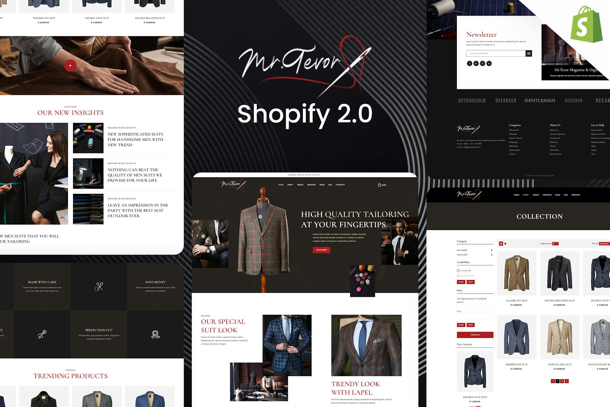 MrTevor is a blazer and coat fashion Shopify theme that has been specifically designed for selling blazers and coats online. It comes with four different home page layouts that are each tailored to showcase these types of products in the best light possible. In addition, MrTevor also includes a wide range of features and options that allow you to customize the look and feel of your website to match your brand. **KEY FEATURES** 1. Responsive Design- Looks great on desktops, laptops, tablets and mobiles. Give it a try on your iPhone or iPad now. Slick Slider- This slider displays your content the beautiful way. Whether it’s a Slider, Carousel, Hero Scene. Products Featured Slider Product Sale Label 2. Product Carousel: Option to showcase products as carousel. Compare Products: This feature enable to compare more than one item at a time Product sorting on collection pages: Sort by price, A to Z, newest etc. Grid & List Mode Customer Reviews 3. Customer accounts: Customers can register, login, change addresses and view past orders. 4. Product Owl Carousel 5. 5 types of Mega Menu 6. Ajax filters: Filter products by colors and other parameters using tags. Ajax Cart: An option to purchase the items without leaving current page. Ajax Wishlist: An option keep your items in Wishlist. 7. Custom Information Widget 8. Custom About us 9. Contact page 10. Drag & Drop sections: Option to change the home page layout order using Drag & Drop option. 11. Highly customizable: Change colors, fonts, background image through the theme settings. No coding required. 12. Multi-currency: The currencies AUD,CAD,USD,GBP,JPY,EUR,NZD,INR,PHP are inbuilt with theme 13. Great for SEO: Uses the latest Shopify SEO features and product data is formatted for Google rich snippet, so that product listings are optimized for search engines. 14. Branded checkout: A seamless checkout for your customers using your logo and color scheme. You can also add a custom checkout header to your checkout screens! 15. Newsletter: Easily link your Mailchimp account to the newsletter form. Social Sharing: Share by Twitter, Facebook, Google+ and Pinterest., MrTevor – Blazer Clothing and Fashion ShopifyTheme Glamourous,Seasons trail, Ethnic,Cultural fusion,Modern shopify theme, Elegant Fashion, lifestyle.