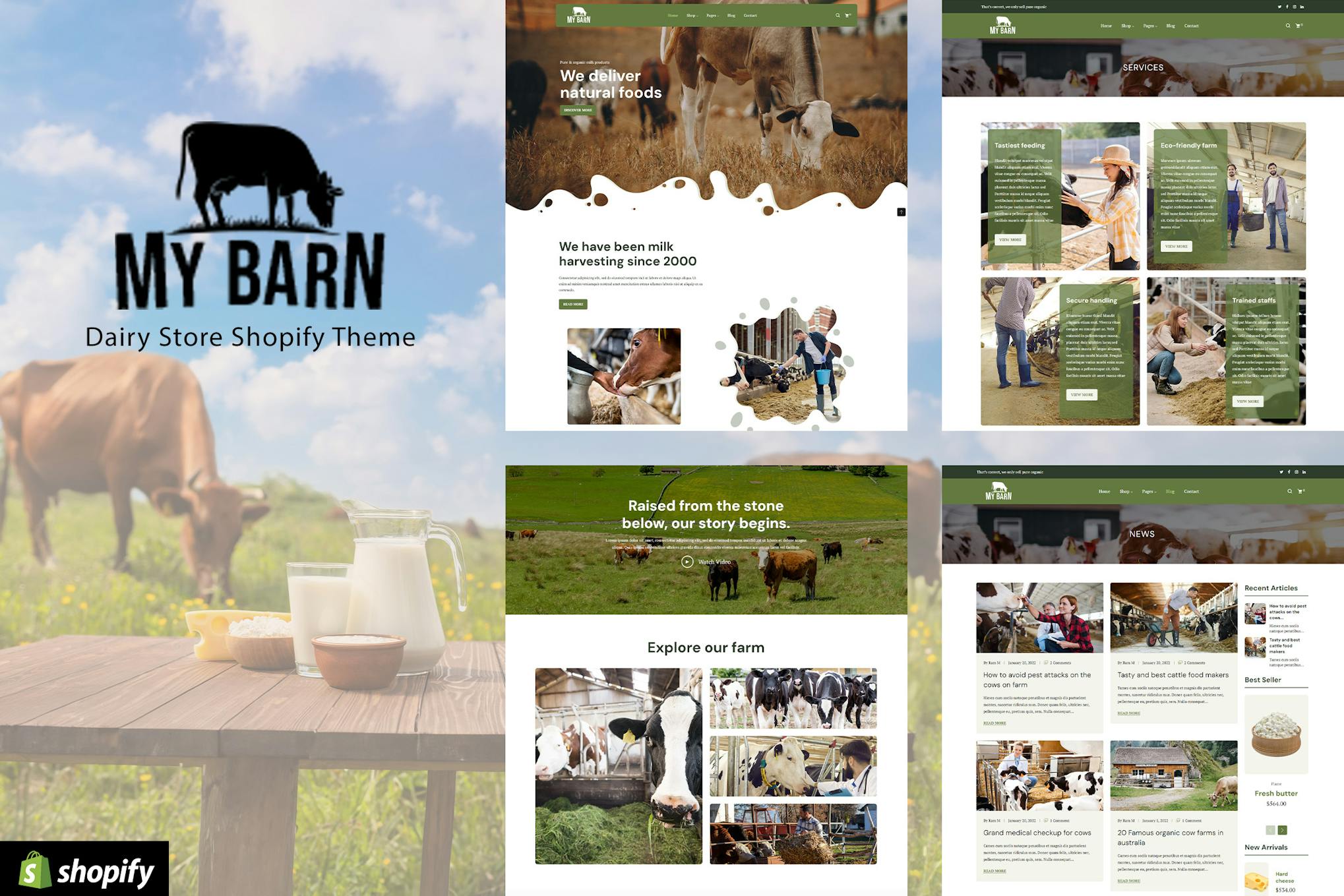 Mybarn – Organic Food, Milk Store Shopify Theme Food Delivery, Farm Fresh Products Websites. Meat Shops, Organic Produces Sale. Milk, Dairy Supplies