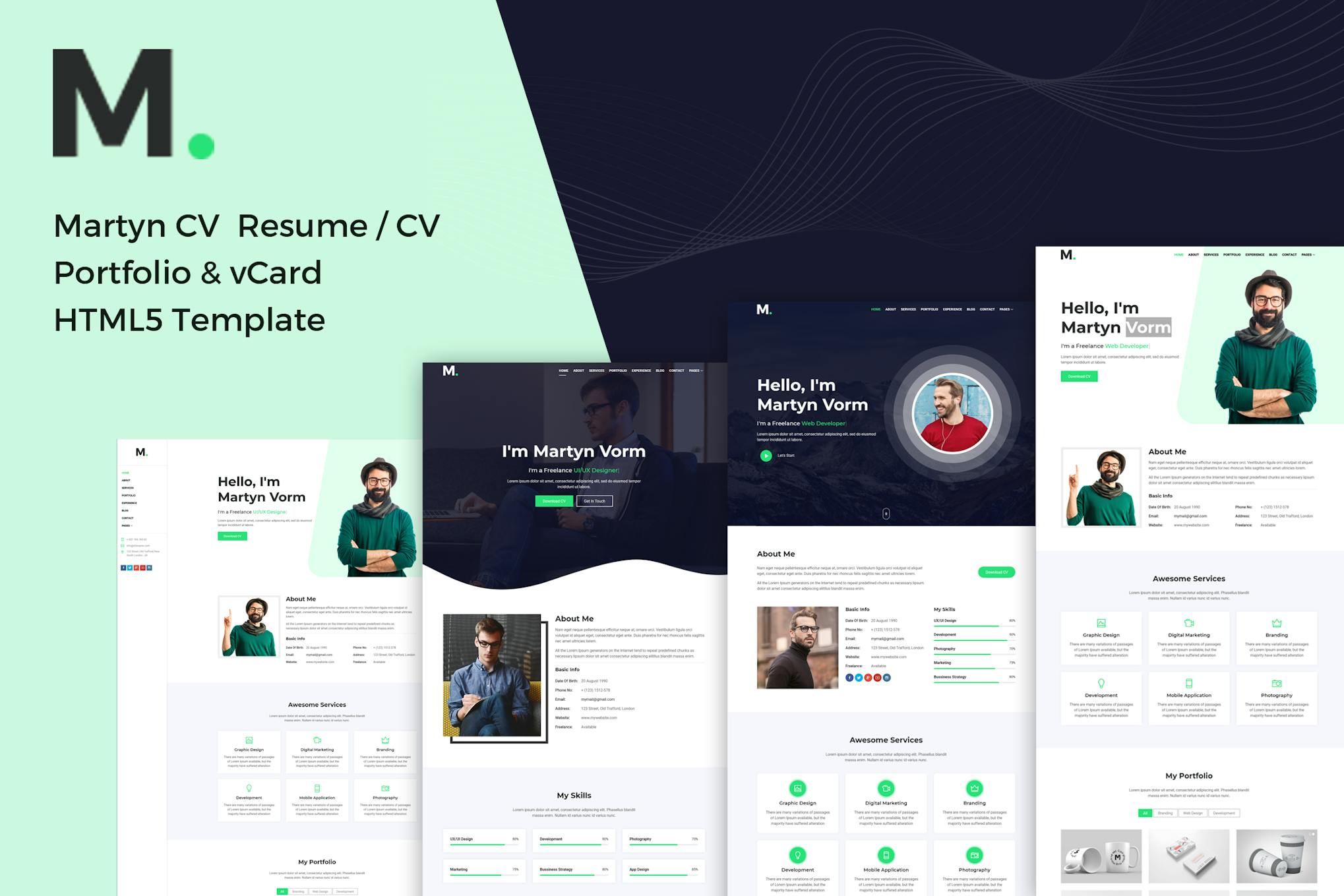 Martyn – CV/Resume/Portfolio/vCard HTML Template Personal portfolio, One page & Professional free resume website is easy with Martyn CV / Resume