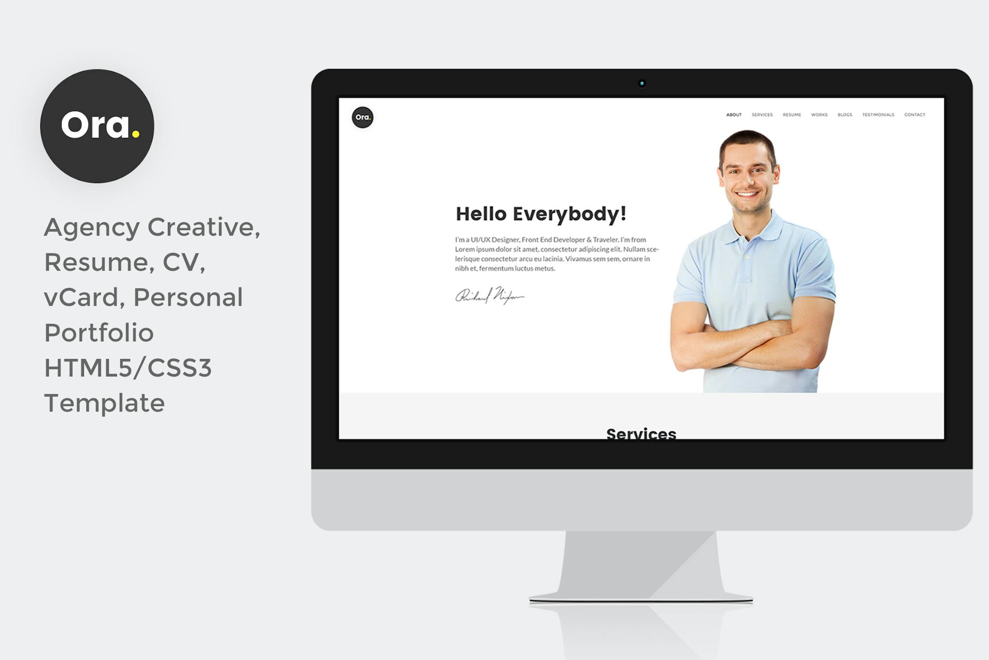 Ora Resume vCard Personal Portfolio HTML5 Template Resume vCard Personal free ecommerce portfolio landing page blog dashboard bootstrap animated